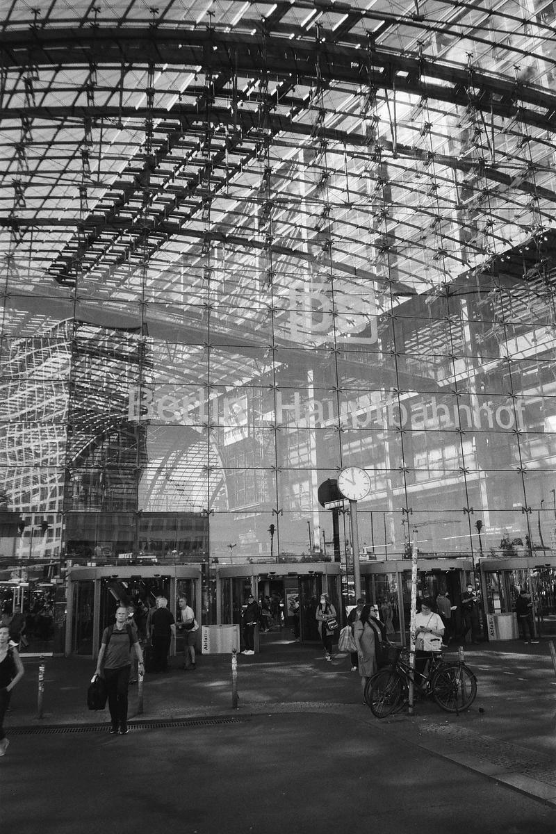 Exterior of the Berlin Hauptbahnhof/Main Station. Shot on Lomography Lady Grey with Leica C3.